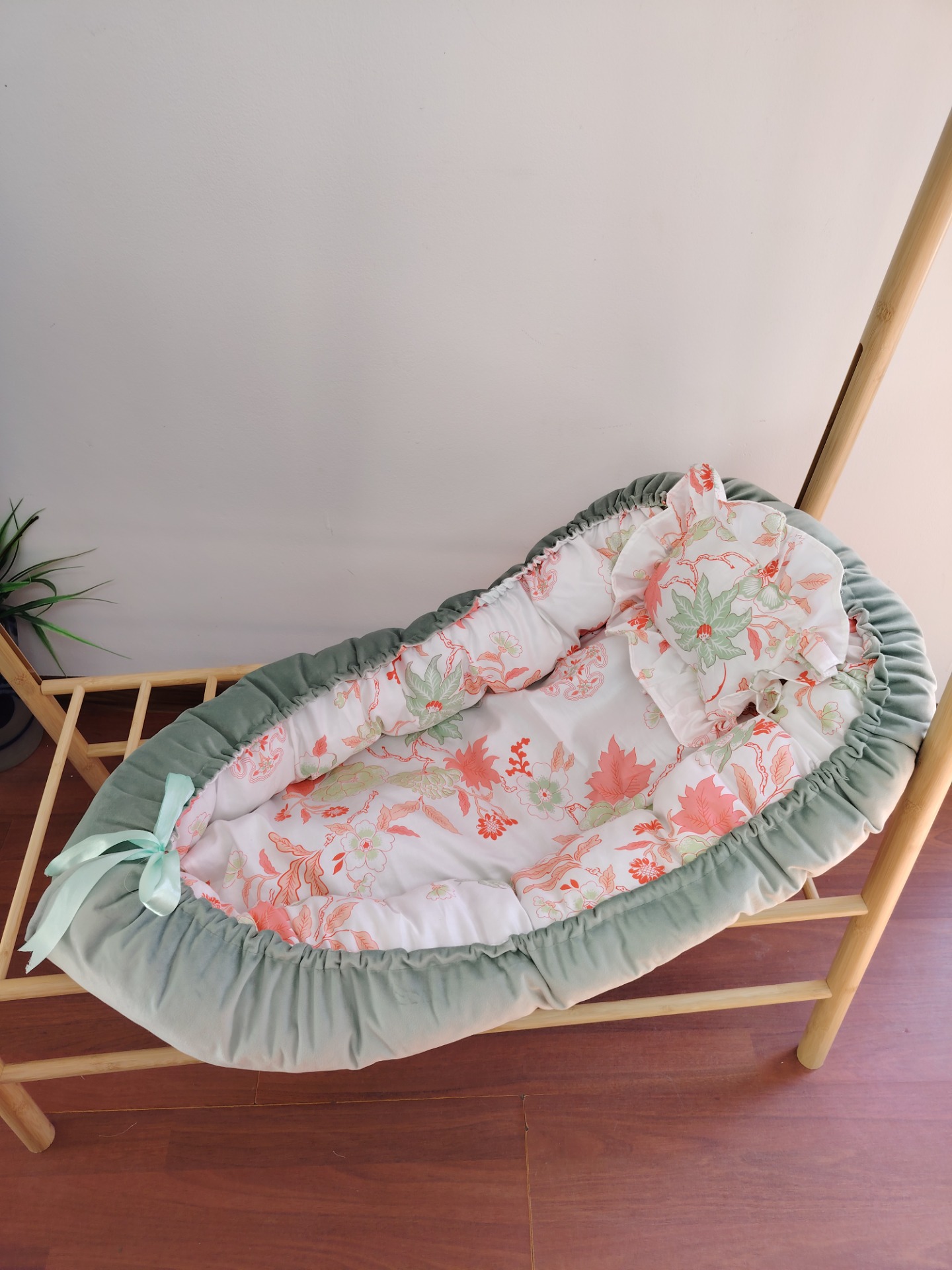 Baby nest din bumbac și catifea